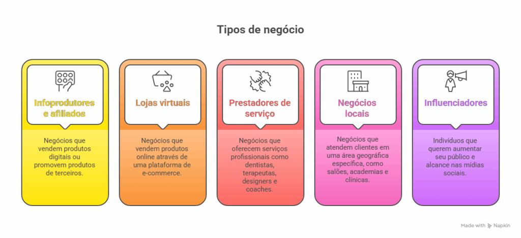 Embora quase todo negócio digital possa usar tráfego pago, ele é especialmente poderoso para: